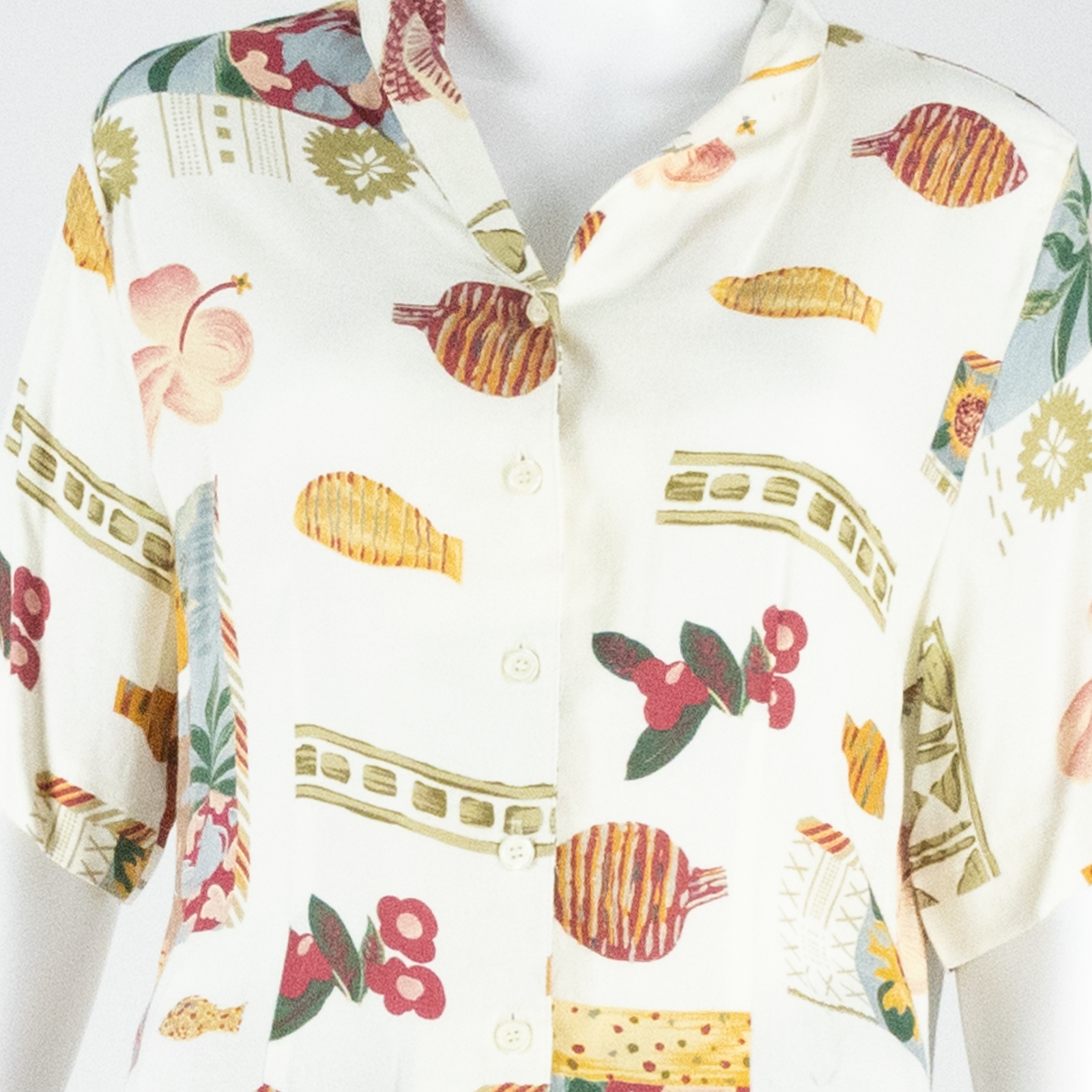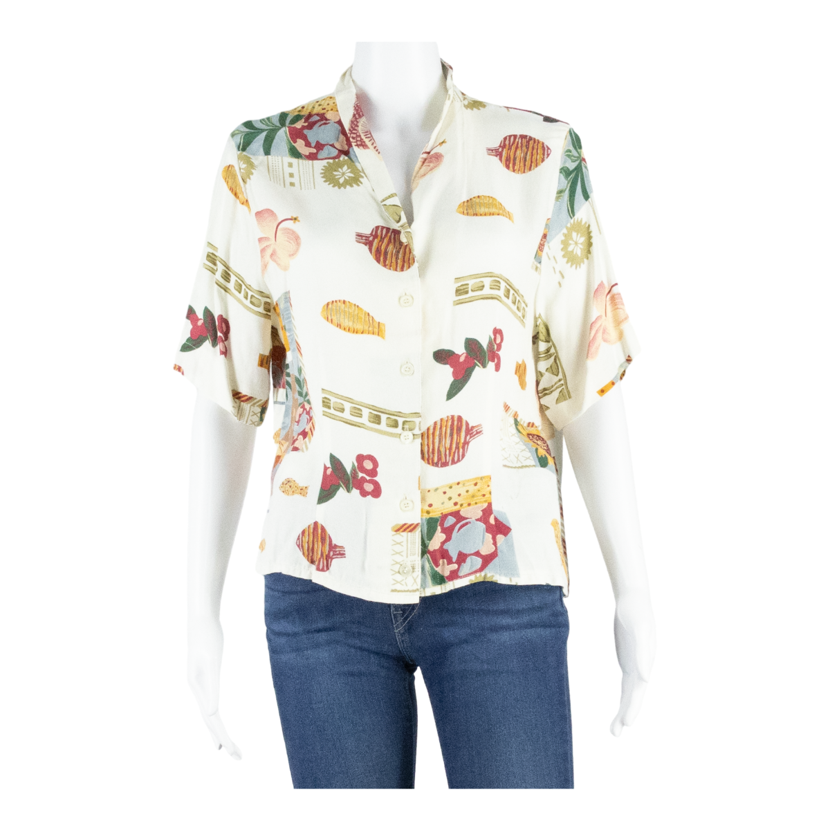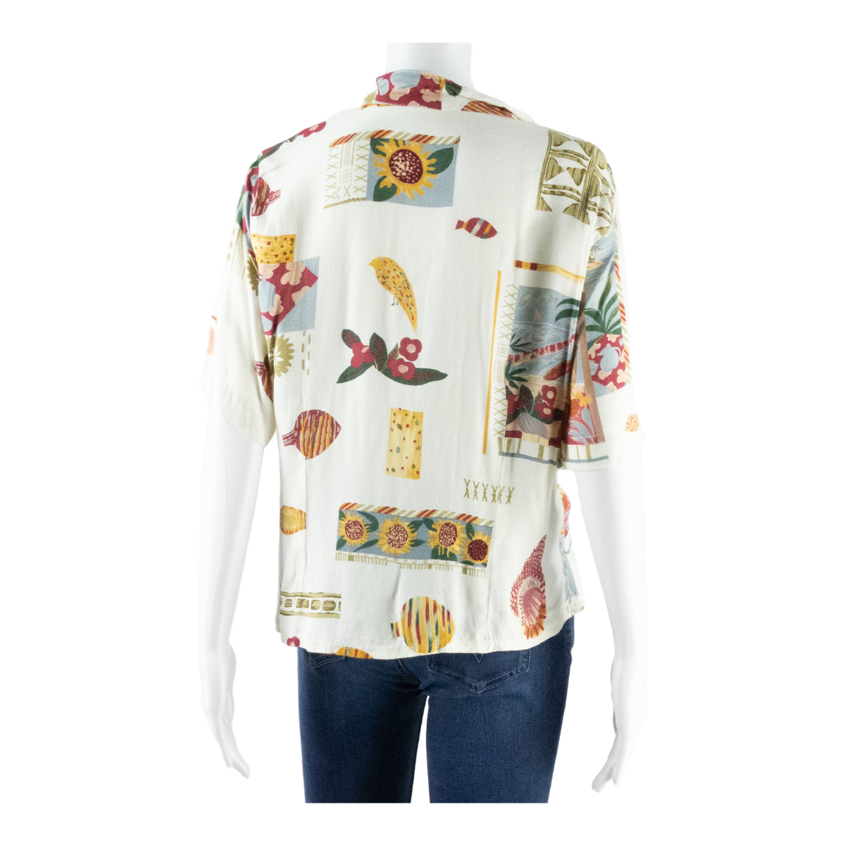 Womens Printed Blouse Beige V-Neck Crazy Pattern UK 14