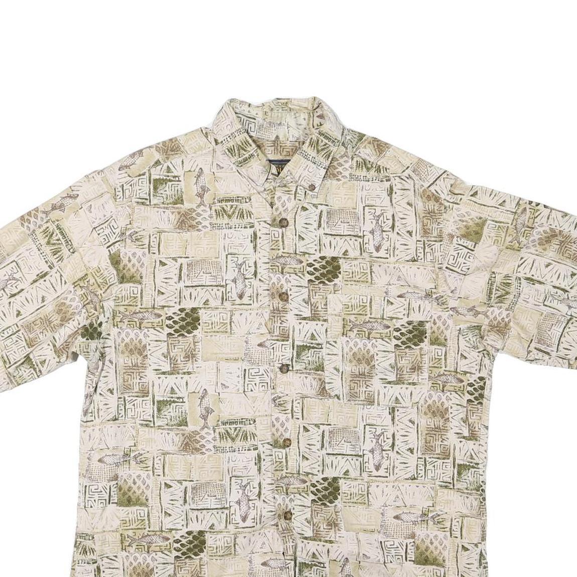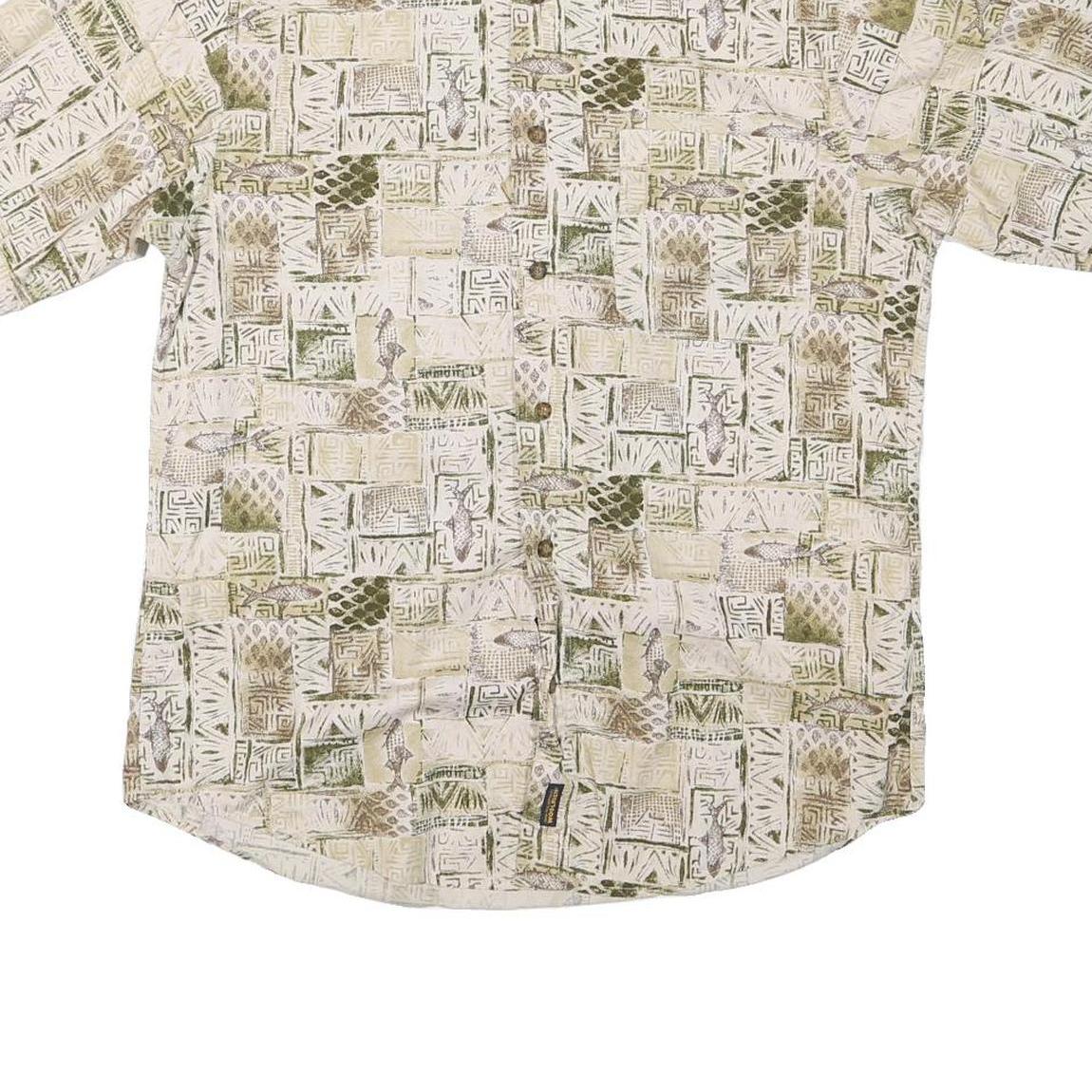 WOOLRICH Mens Beige & Olive Patterned Cotton Blend Shirt M Casual Summer