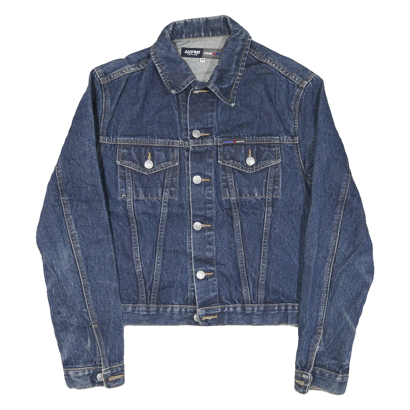 WPM Womens Blue Denim Jacket M Cotton Blend Button Closure Casual Stylish
