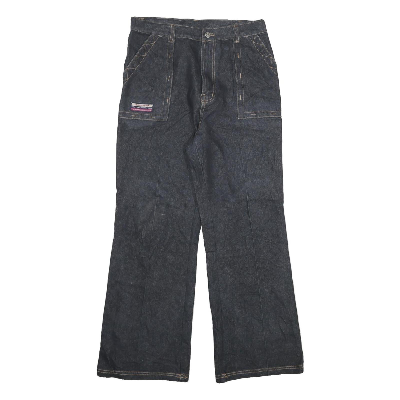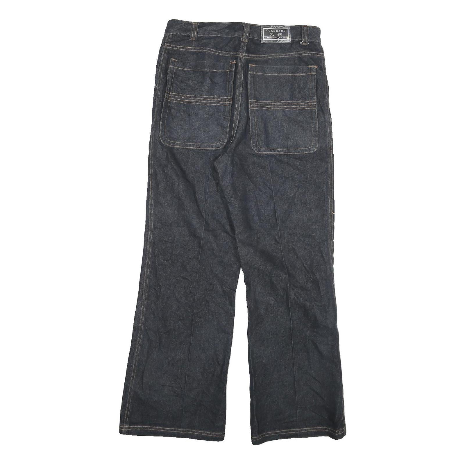 YUANBANG is known for crafting practical and stylish jeans merging traditional denim craftsmanship with modern touches. These pre-loved jeans remain in excellent condition, professionally cleaned and ready for wear, perfect for those seeking high-quality, classic denim with a contemporary wide-leg cut.