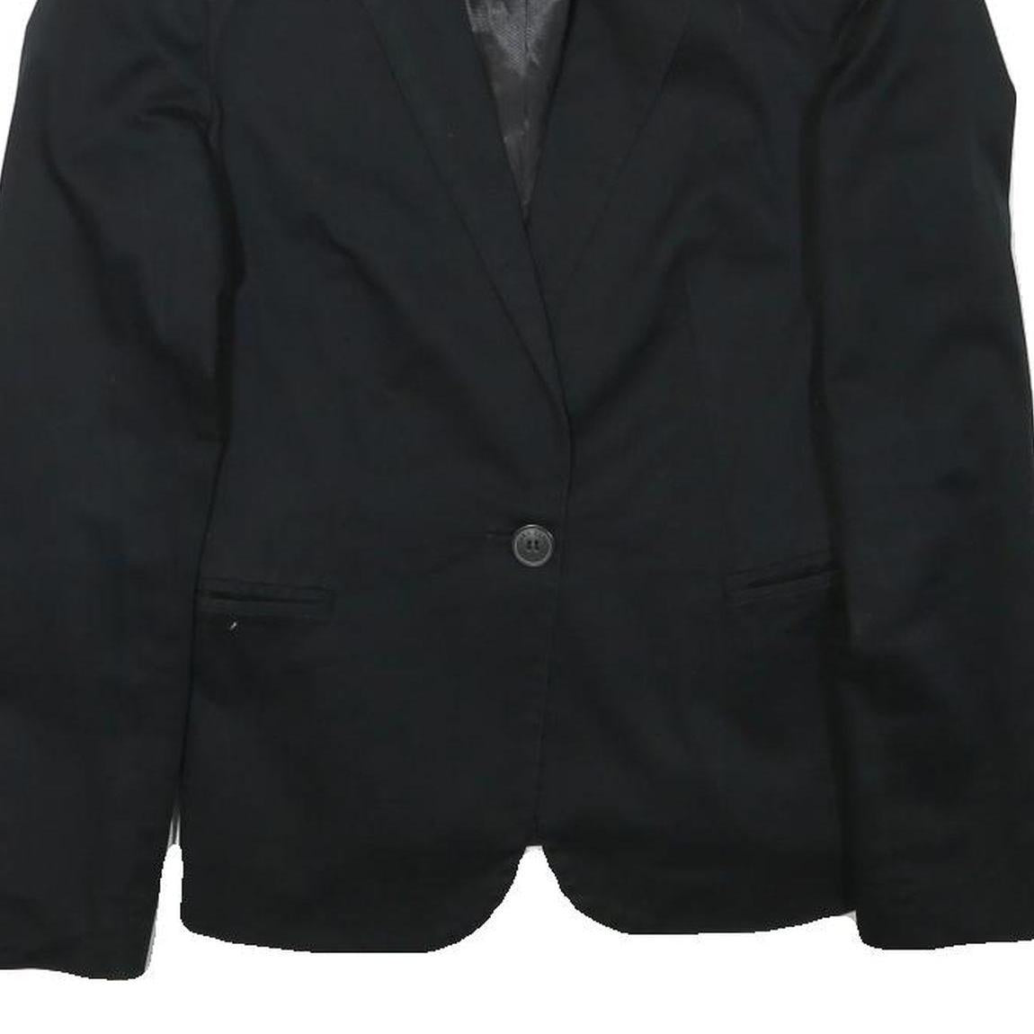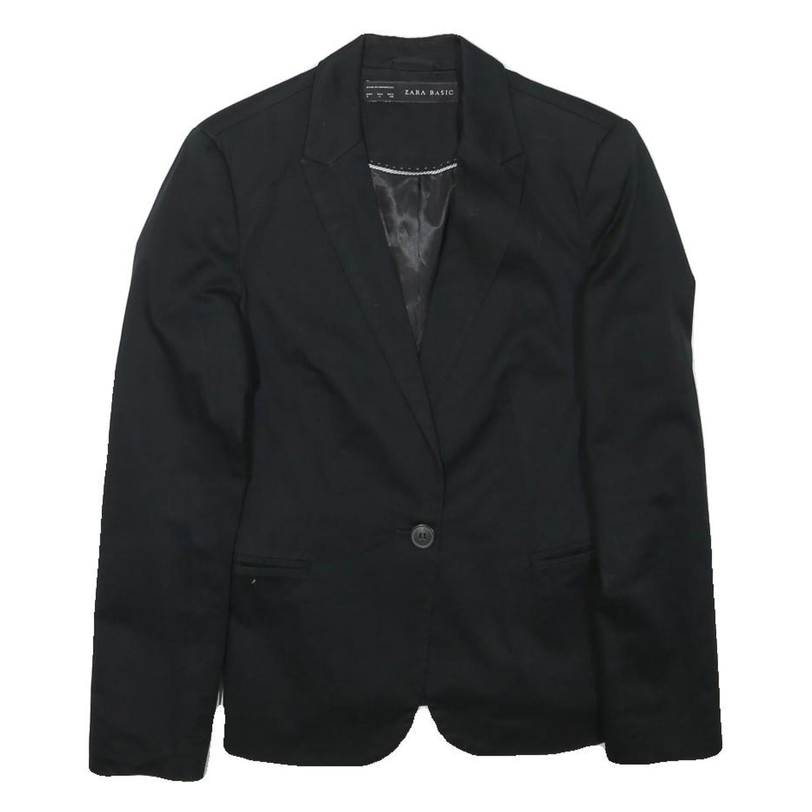 ZARA BASIC Womens Black Cotton Blend Blazer Jacket S Plain Button Closure