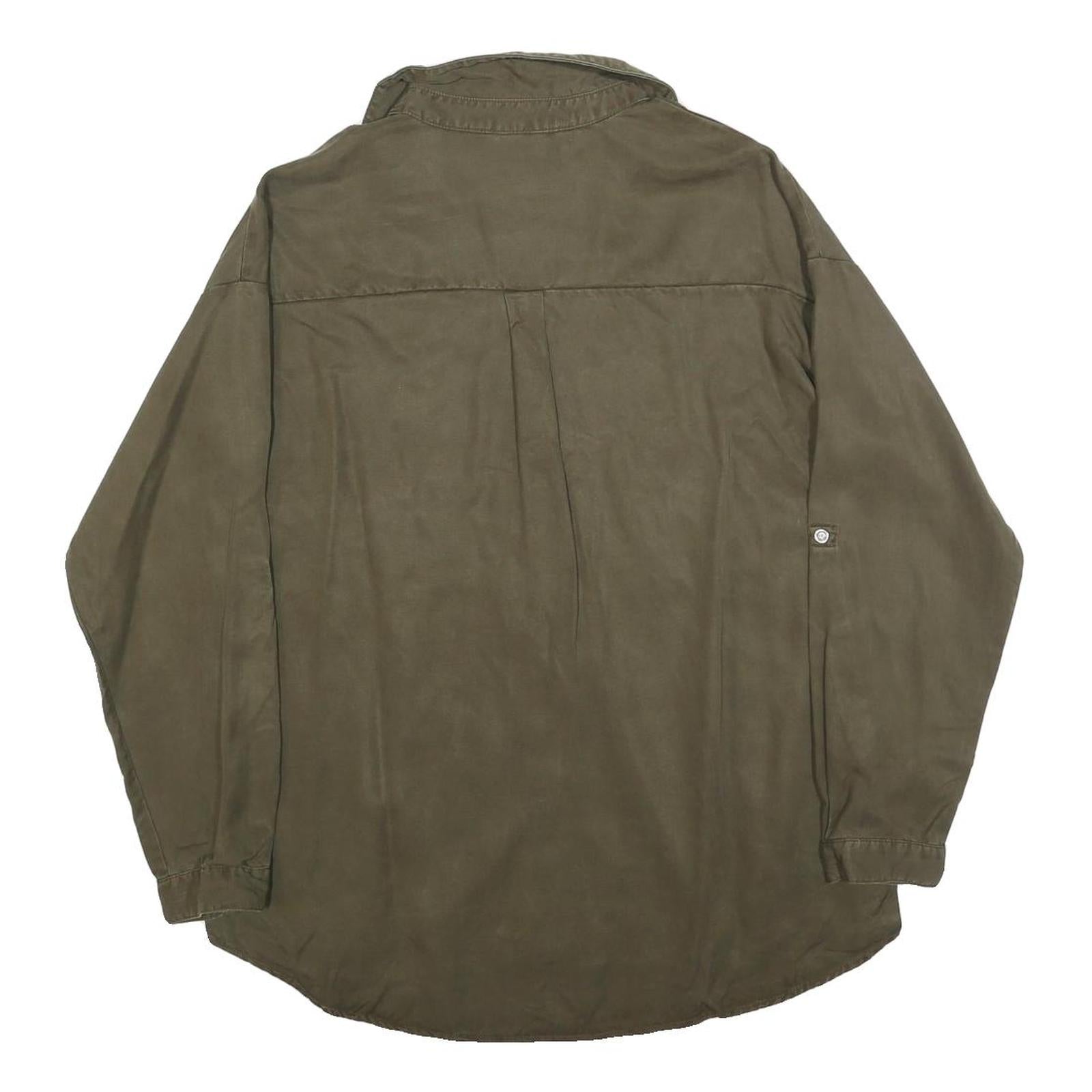 ZARA Womens Green Basic Long Sleeve V-Neck Shirt S Cotton Blend Casual