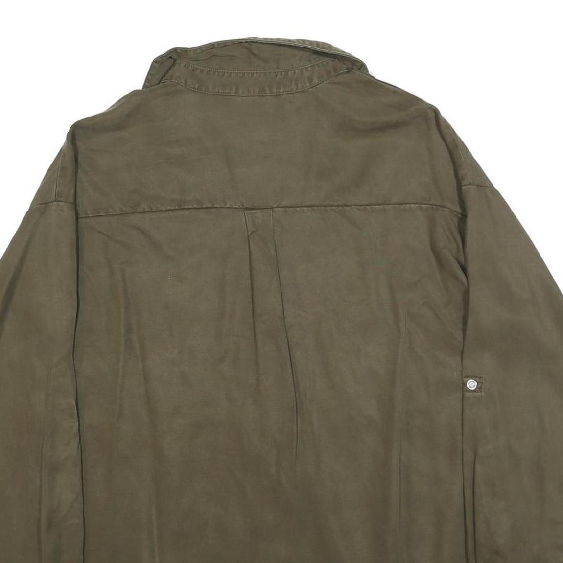 This Zara womens shirt is crafted in a soft green cotton blend, offering comfortable wear with a relaxed fit. It features a classic long sleeve design with button cuffs, adding a touch of versatility. The shirt has a V-neckline with a subtle collar for everyday elegance.