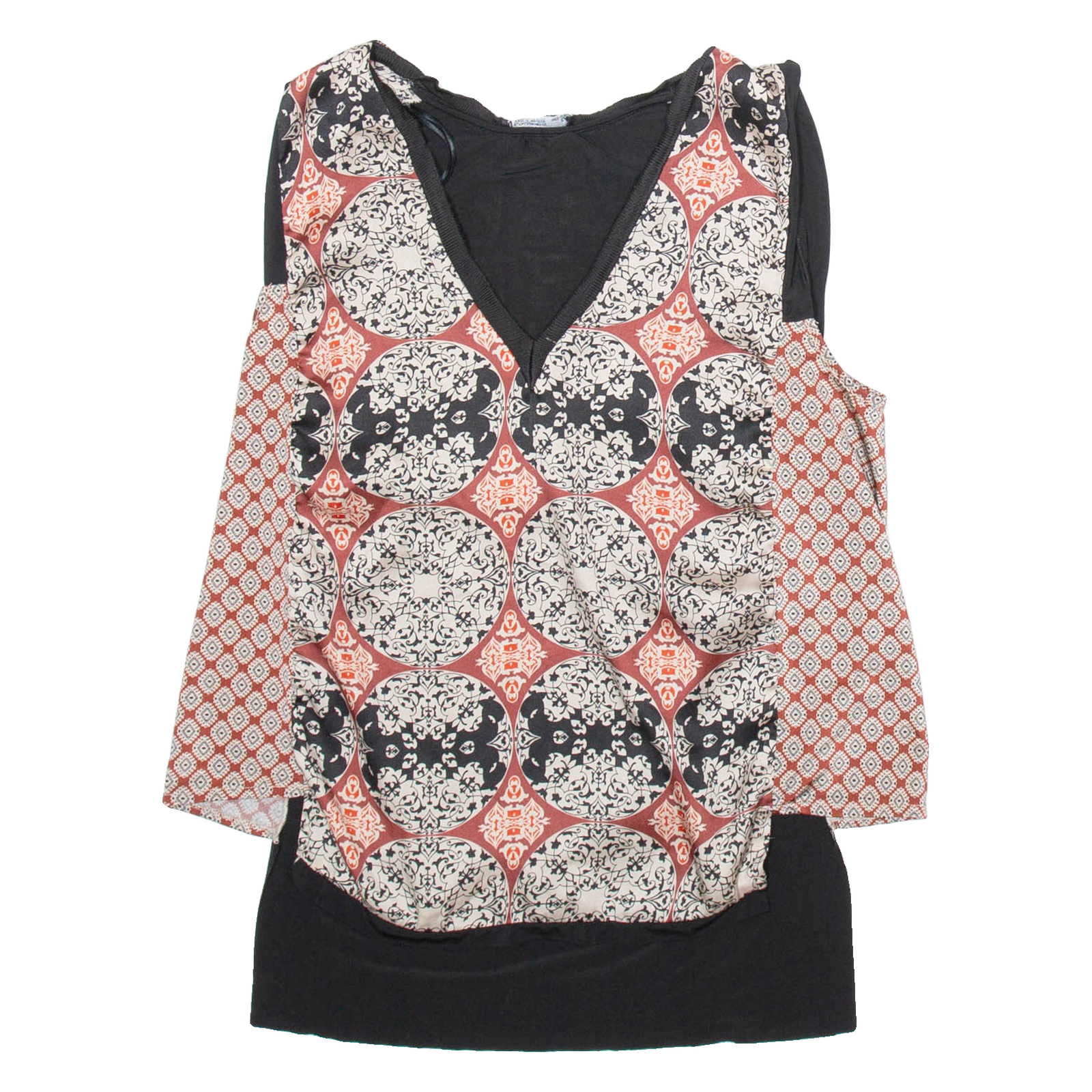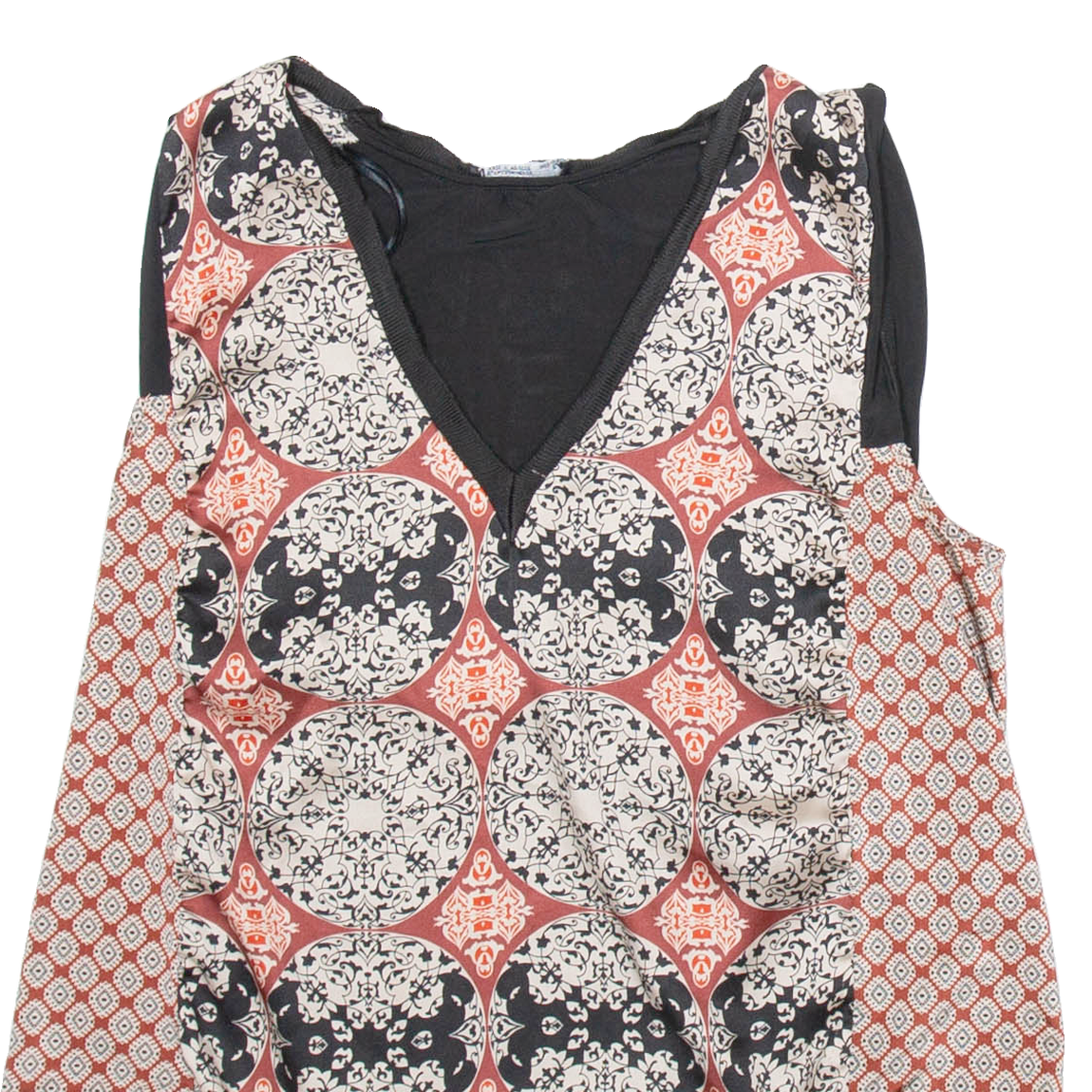 ZARA Womens Printed Vest Black V-Neck Sleeveless Silk Crazy Pattern M