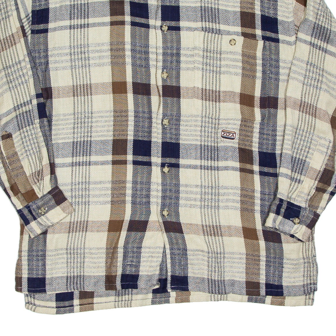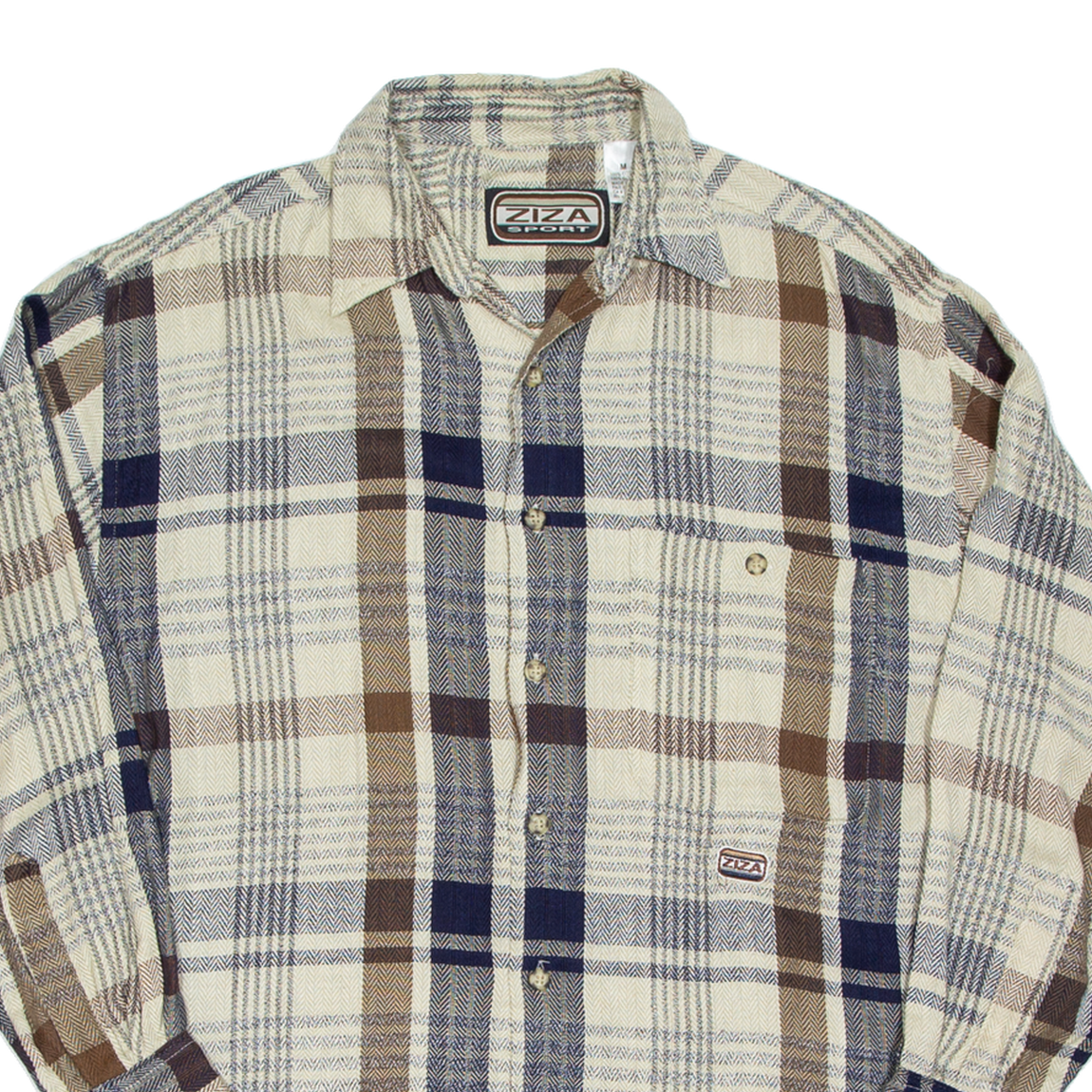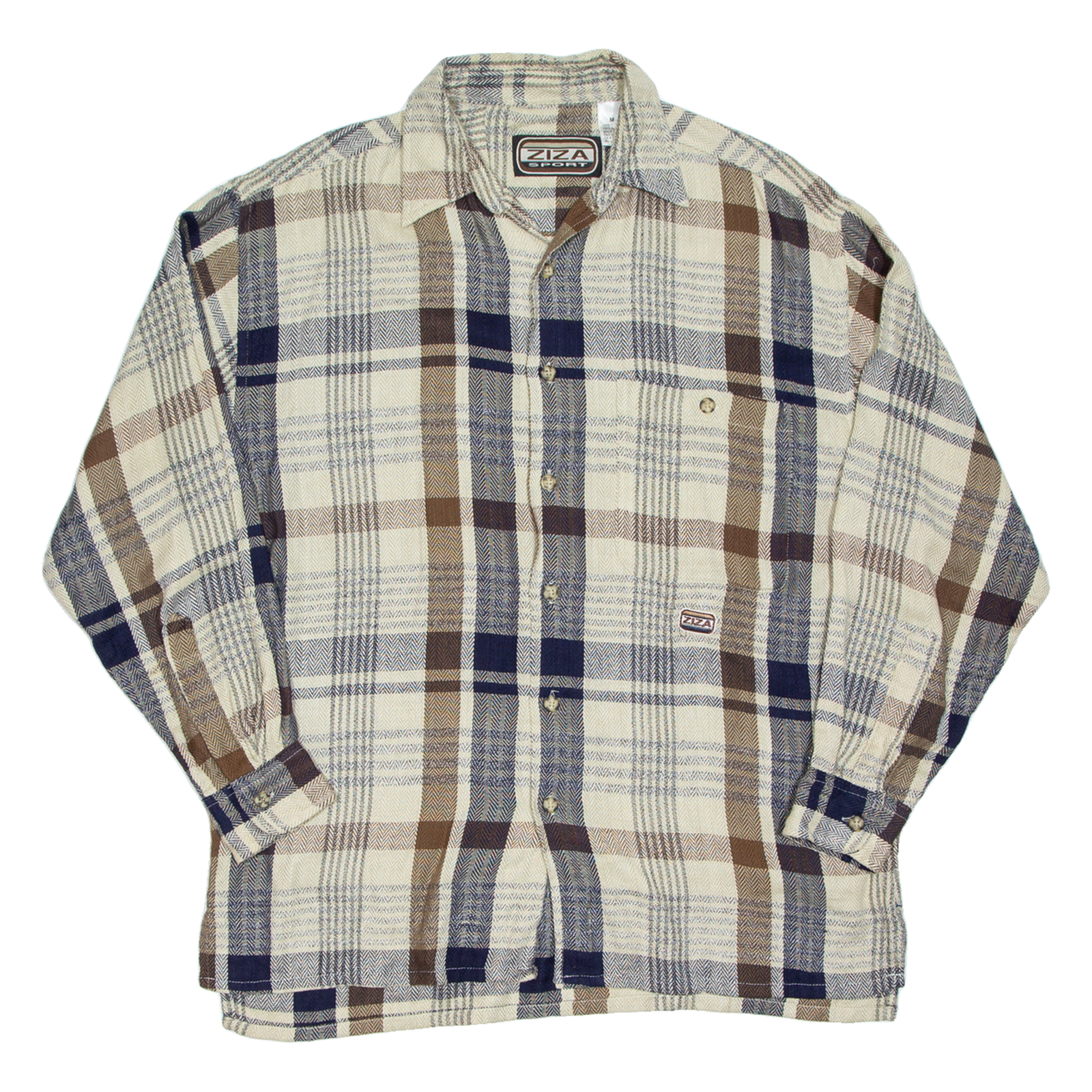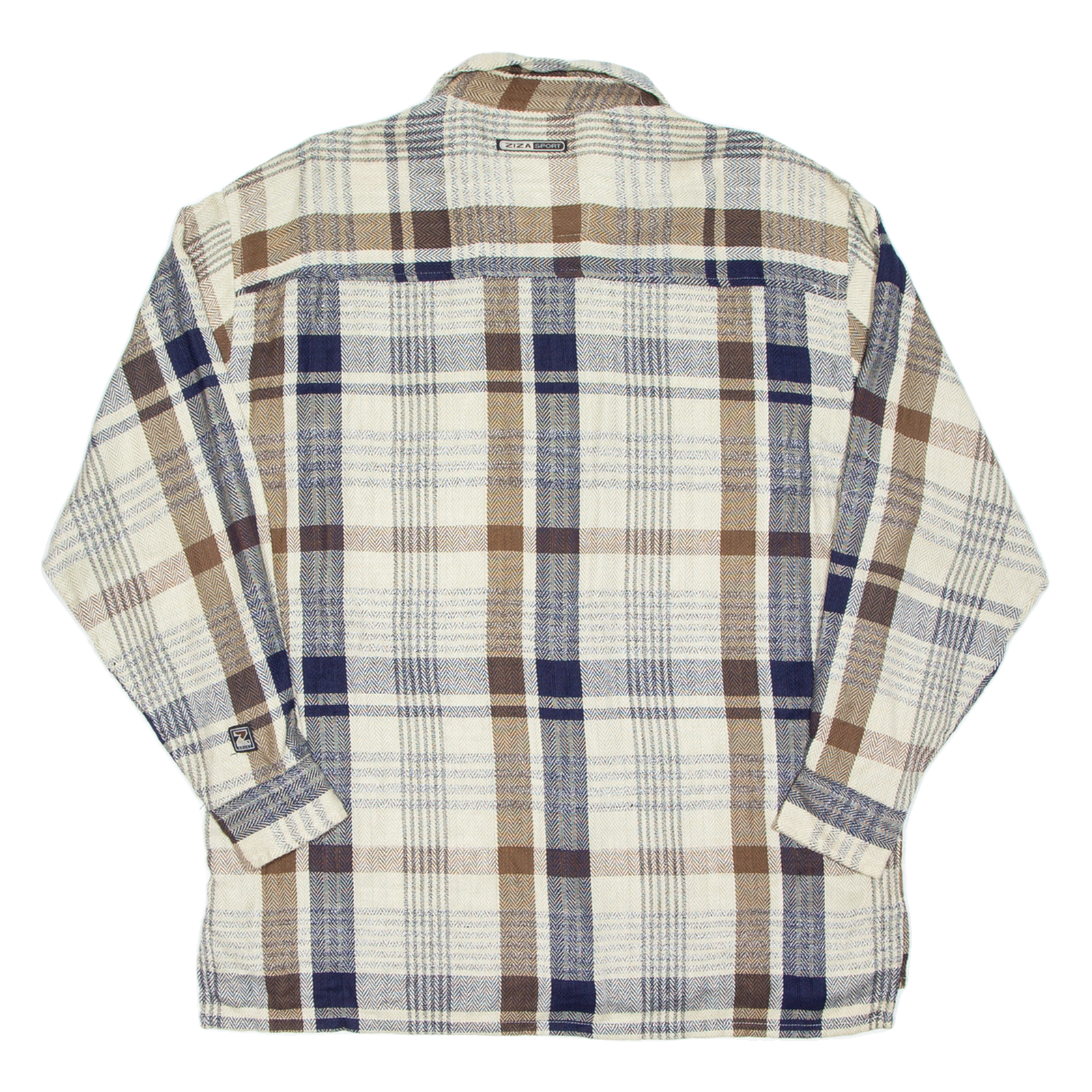 ZIZA SPORT Mens Flannel Shirt Beige Check Long Sleeve M